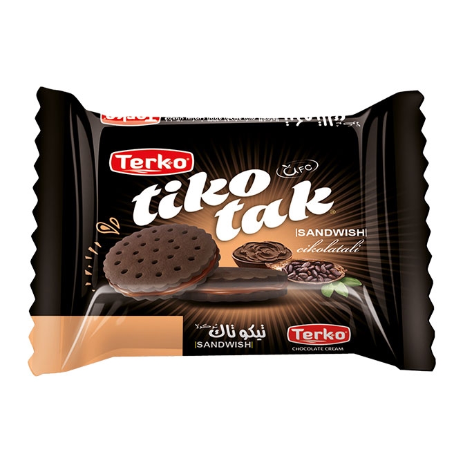 قطعتان من بسكويت الكاكاو المحشو بكريم الشوكولا