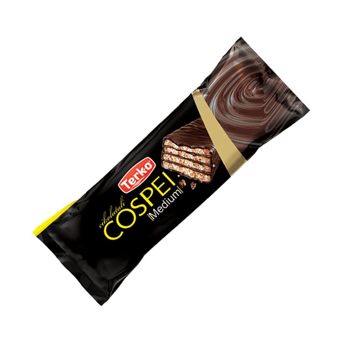 بسكويت ويفر مغطس بالشوكولا الداكنة مع الطبقات الويفر الغنية بالكريمة الداكنة المرة
